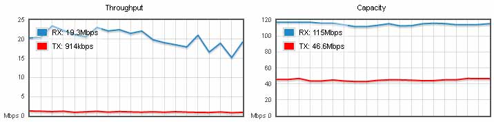 was 115Mbps, while the download usage was only 19.3Mbps. The upload capacity was 46.6Mbps, while